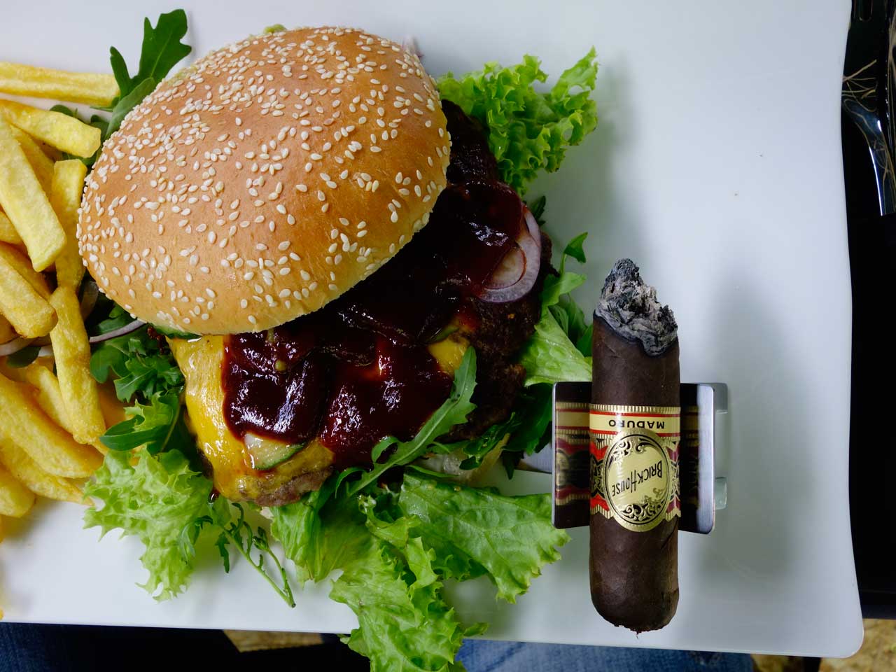 Toller, stets freundlicher, Service und wirklich leckeres Essen runden die durchweg positive Erfahrung ab. Neben der Hingabe zu Tabak und Golf, vermag mich auch ein gut gemachter Burger zu locken und der ist hier wirklich ein Tipp! Bis auf das Brötchen alles selbst hergestellt, sogar das vorzügliche Pettie, lockt der Spice Club Burger mit Cheddar, Guacamole, Ruccola und einer vorzüglich ebenfalls selbstgemachten BBQ-Sauce. Ein Burger, der die Anreise lohnt!