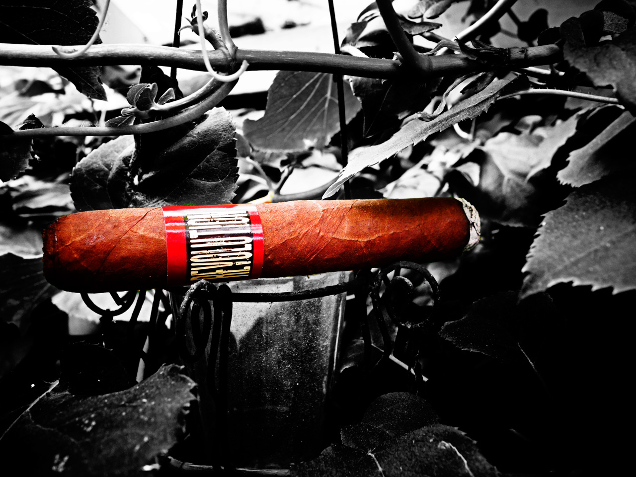 Die Verarbeitung der großen Robusto von 2,2×13,3cm ist tadellos, das Deckblatt feinadrig und fast madurofarben. Im Kaltzug kommt sie fruchtig-ledrig daher, nach Entzündung hat sie ein sehr gutes , fast schon lockeres Zugverhalten. Der üppige cremige Rauch stellt den Liebhaber von viel Rauch um den Kopf voll zufrieden. Geschmacklich ist die Revolution im mittlekräftigen aber nie scharfen Bereich angeordnet. Sie hat vielleicht ganz weit hinten eine pfeffrige Note, die lässt sich aber durch die Intensität des Zuges sehr gut steuern, ansonsten dominieren süßlich, ledrige Tabakaromen.