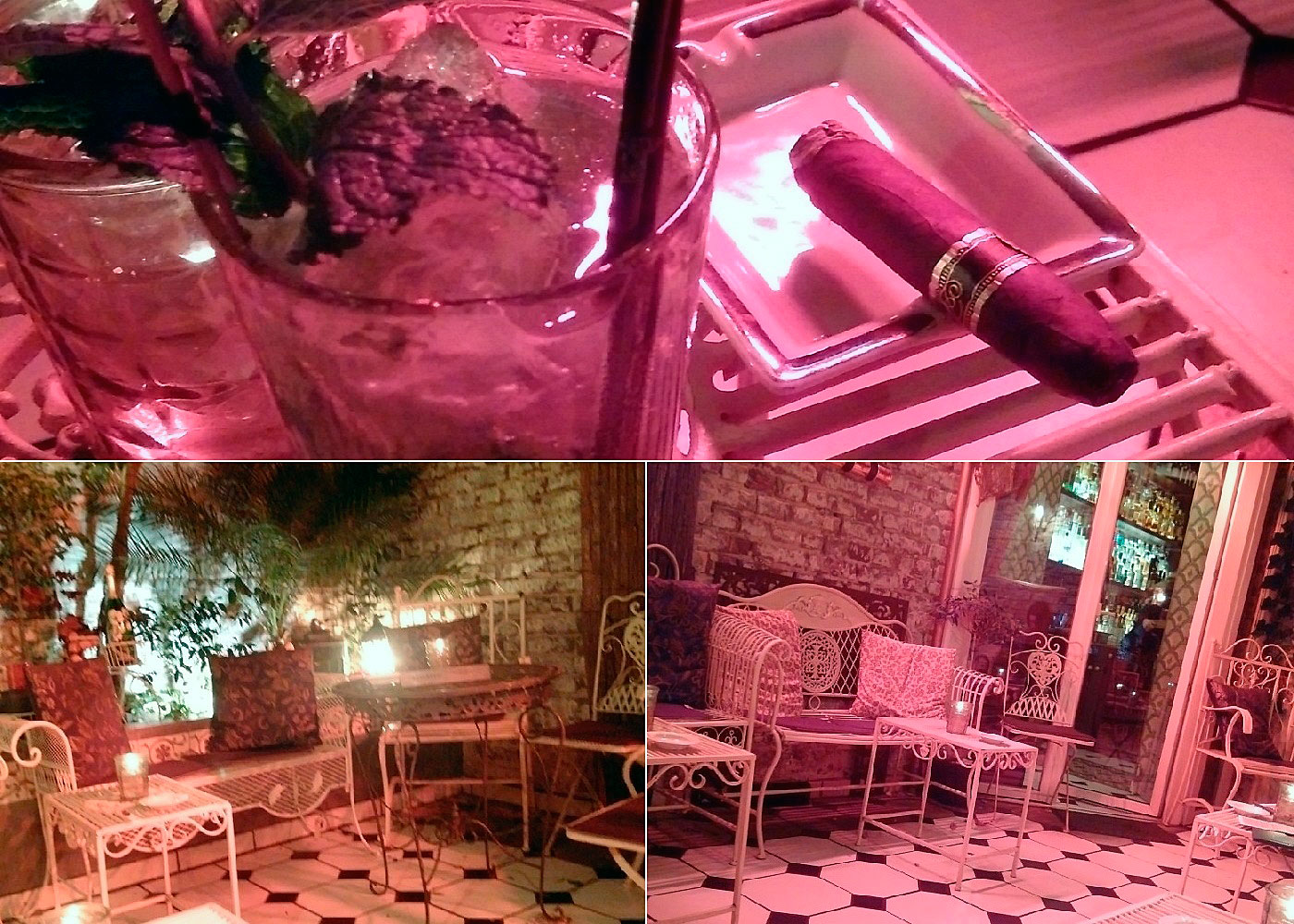 Ich habe mir lediglich erlaubt , mit dem Handy Fotos , und diese im Infrarotlich der Strahler, des geschmackvoll gestalteten Innenhofs des Kölner Altbaus zu machen. Sollte ich vom Besitzer die Freigabe erhalten, stelle ich noch weitere Fotos ein. Wie zu sehen, schon geschehen! Ach ja, der Aficionado… Zigarrenrauch ist ein grundlegender Bestandteil der Welt des Genusses, insbesondere in Bars alter Schule und so findet sich auch hier ein Refugium für den Aficionado in Zeiten der Reglementierung vieler Genüsse. Das in der Bar nicht geraucht wird, macht rein gar nichts, im Innenhof ist Platz und es gibt für den vergesslichen oder gelegentlichen Tabakgeniesser einen Humidor.
